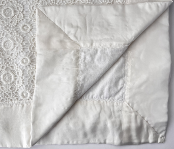 Kauni lillemustriga pitstekk beebidele. Teki pealispinda katab valge lillemustriline pits, ääristatud materjal on 100% siid, mis on beebi nahale õrn ja pehme. Lapse kehaga kokkupuutuv materjal on 100% puuvillane flanell, mille harjatud pealispind tagab erilise pehmuse ja soojuse. Sobib suurepäraselt nii kodus kasutamiseks kui ka õue peale panemiseks.
